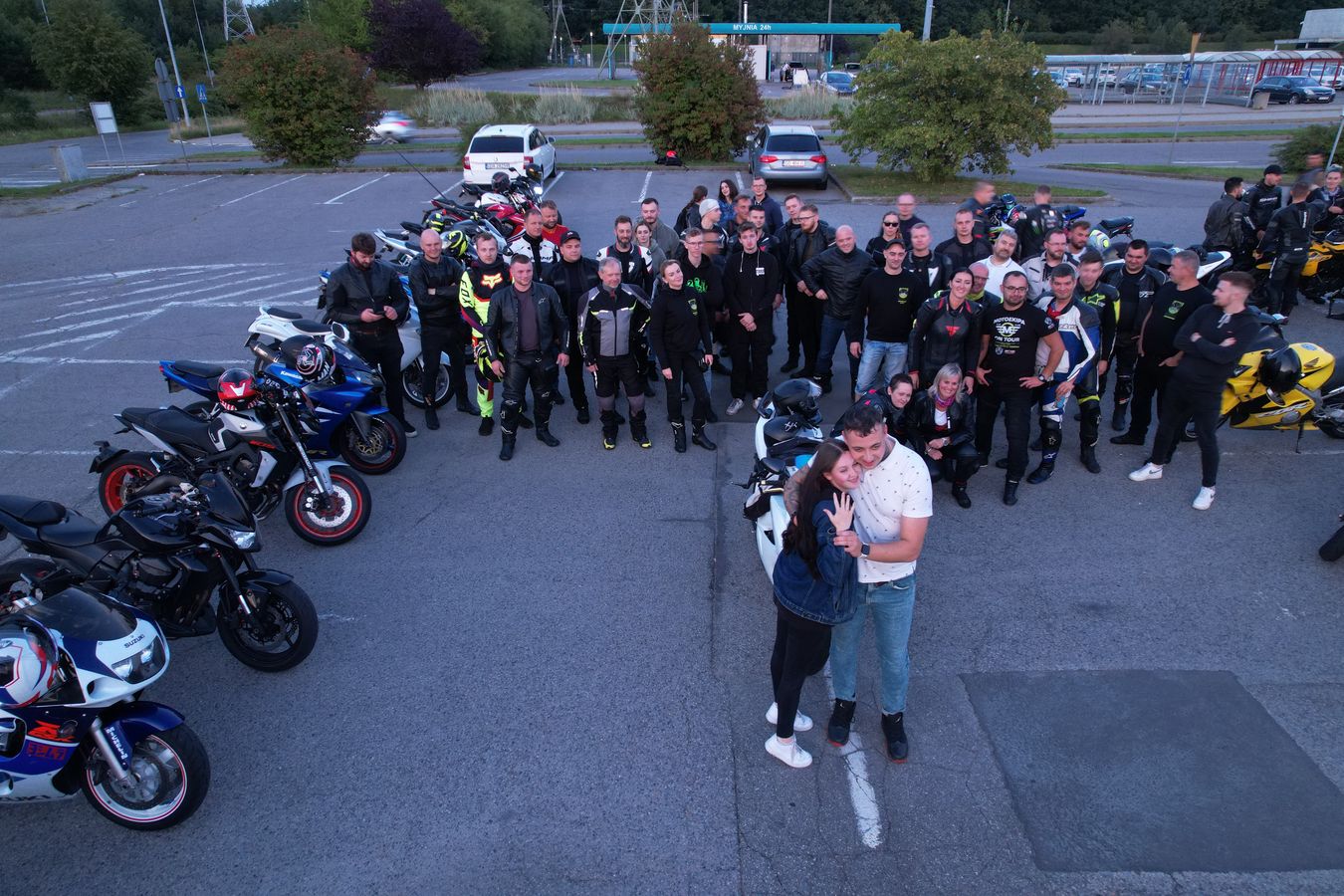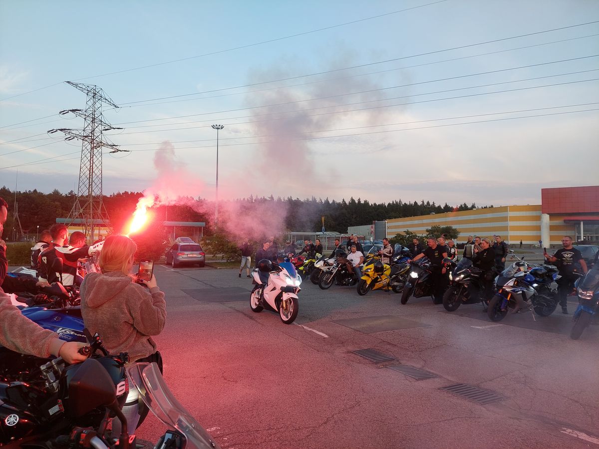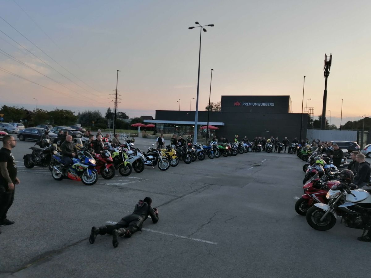 Kto z MotoEkipy mógł pojawił się wieczorem na Maxxie, motocykle ustawione w szpaler, próba generalna się odbyła, pozostało czekać na głównych aktorów. Sergiusz z dziewczyną trochę pokrążył po okolicy, żeby za szybko nie dojechać, potem wjechał w szpaler, zdjął kask i rympsnął na kolanko przy wtórze ryku silników.