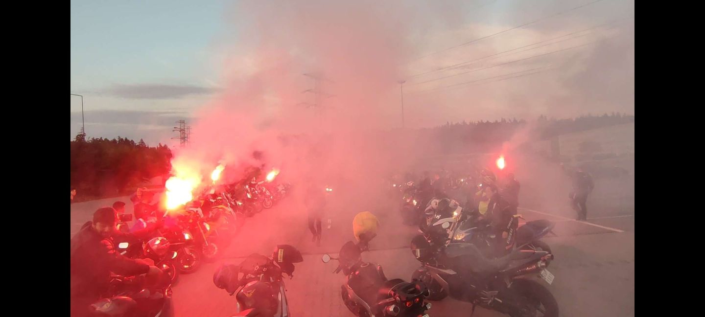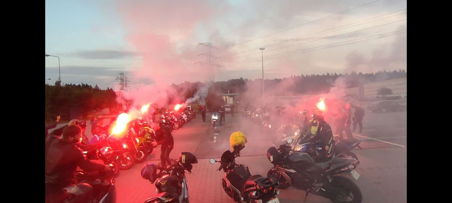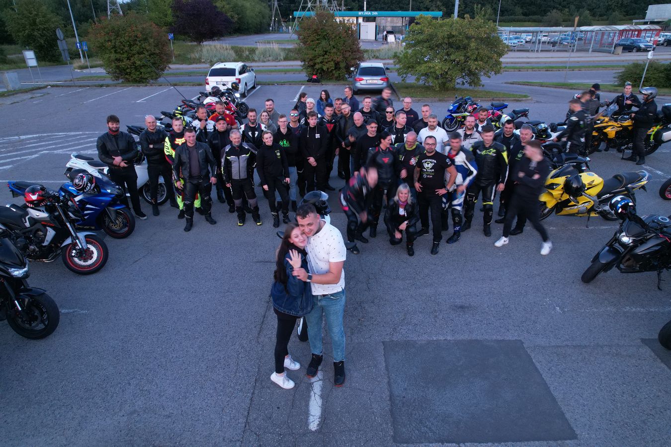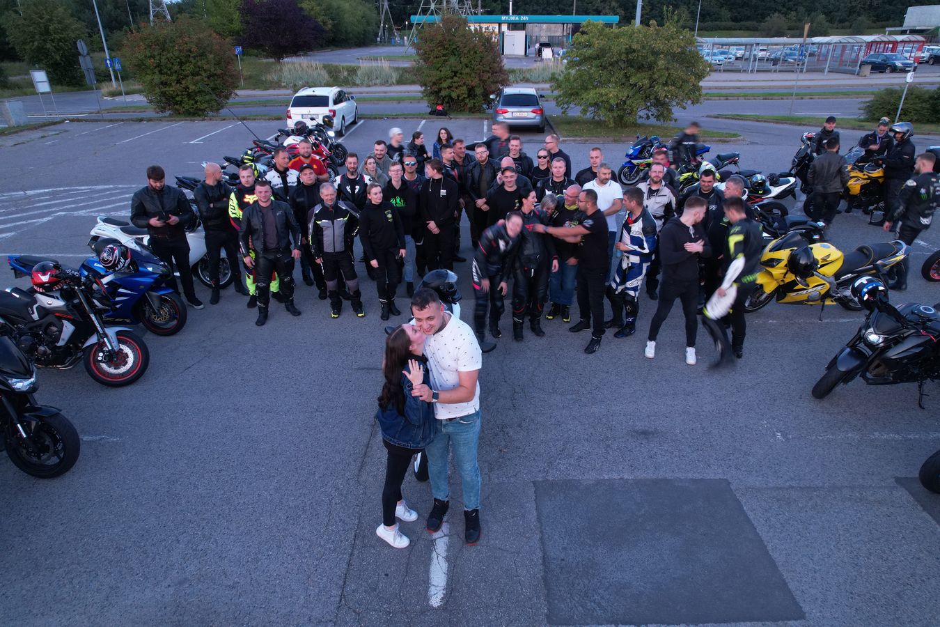 Kto z MotoEkipy mógł pojawił się wieczorem na Maxxie, motocykle ustawione w szpaler, próba generalna się odbyła, pozostało czekać na głównych aktorów. Sergiusz z dziewczyną trochę pokrążył po okolicy, żeby za szybko nie dojechać, potem wjechał w szpaler, zdjął kask i rympsnął na kolanko przy wtórze ryku silników.